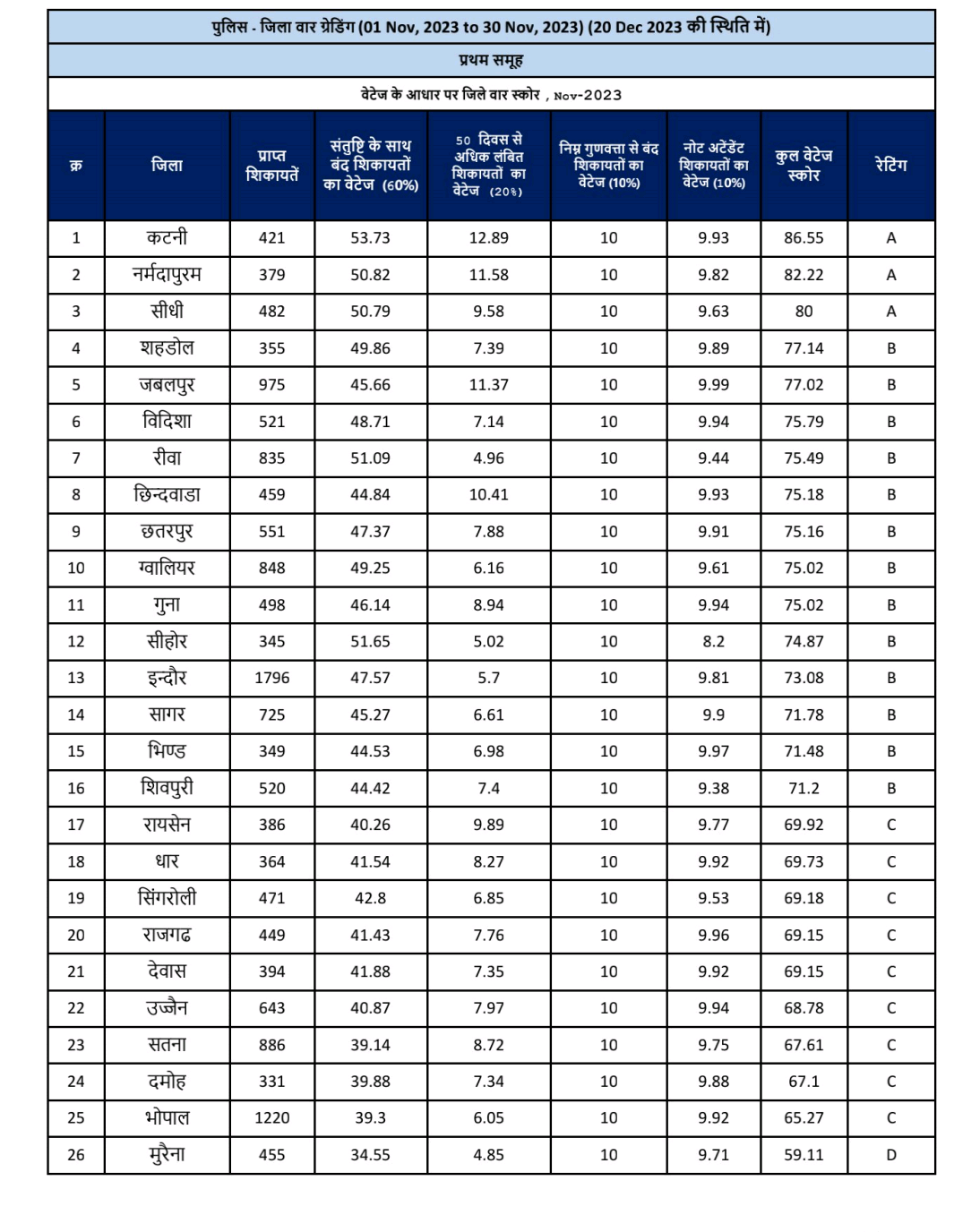 सी0एम0 हेल्पलाइन की जारी रैंकिंग में कटनी जिले को मिला प्रथम स्थान