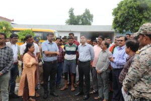 कटनी। नवपदस्थ कलेक्टर श्री दिलीप कुमार यादव ने गुरुवार को पदभार ग्रहण करने के तत्काल बाद अतिवृष्टि प्रभावित ढीमरखेड़ा क्षेत्र के गांवों का दौरा किया। यहां के दर्जनों गांवों में पिछले 48 घंटों से लगातार हुई झमाझम बारिश से बाढ़ जैसे हालात बन गए थे। जिसके कारण इस अंचल के 15 ग्राम पंचायतों के लगभग 40 से अधिक गांव प्रभावित हुए हैं। कलेक्टर ने अतिवर्षा से प्रभावित गांवों के लोगों के चाय- नाश्ता, भोजन और ठहरने के लिए अभी यहां लगे राहत शिविरों के बारे में जानकारी ली। इस मौके पर जिला पंचायत सीईओ शिशिर गेमावत भी मौजूद रहे।